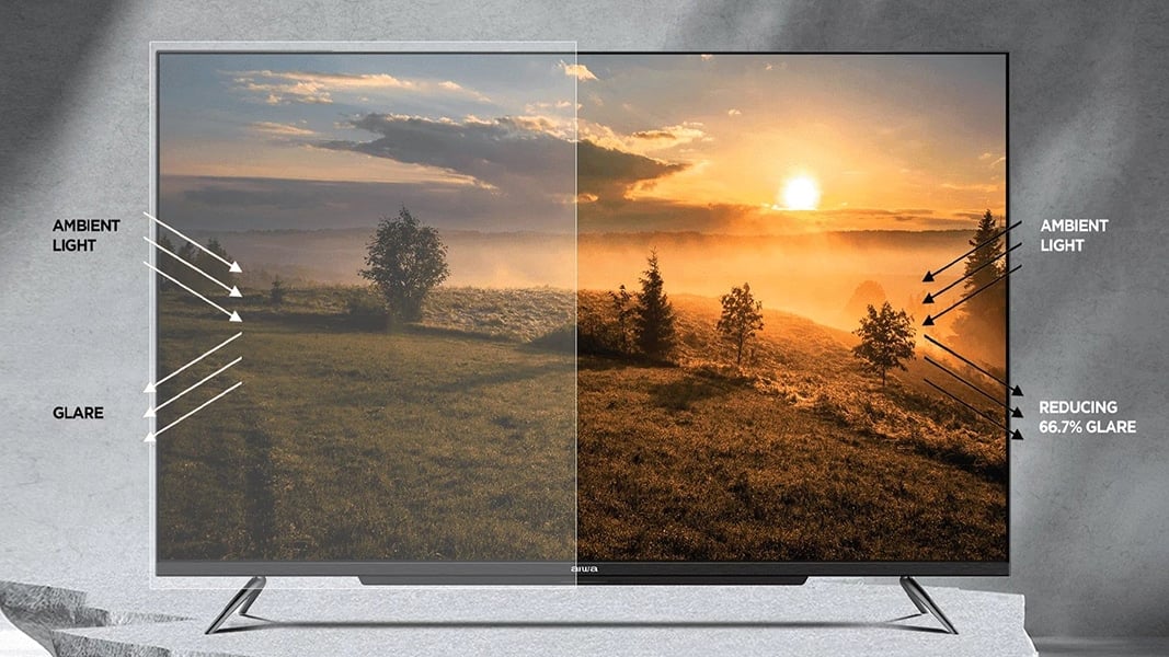 Aiwa’s Range of MaginifiQ TVs come with an anti-glare coating that does not let your eyes get tired easily. The protective film with Black Reflect technology reduces glare and reflections from the screen and protects you from harmful radiations.