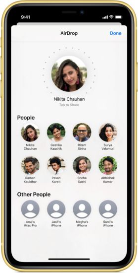 Ultra Wideband technology comes to iPhone. The new Apple-designed U1 chip uses Ultra Wideband technology for spatial awareness - allowing iPhone 11 to precisely locate other U1-equipped Apple devices. Think GPS at the scale of your living room. So if you want to share a file with someone using AirDrop, just point your iPhone at theirs and they'll be first on the list.