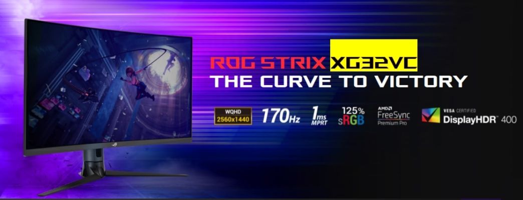 ROG Strix XG32VC Gaming Monitor – 31.5 inch WQHD (2560 x 1440), 170Hz (Above 144Hz), 1ms MPRT, Extreme Low Motion Blur Sync, 125% sRGB, FreeSync Premium Pro, DisplayHDR 400