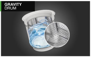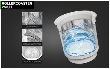 Amalgamation of Gravity drum, aquajet pulsator & cascade waterfall gives you the fortified rollercoaster wash. Gravity drum ensures all-round movement of the fabric. Aquajet Pulsator's large surface area creates strong turbulence and better scrubbing action and Cascade Waterfall cleanses the dirt-out, with water housing in from both sides