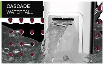 The cascade waterfall technology creates a unique wash action, with water dropping in from both sides of the drum like a waterfall, forcing dirt out of the fabric.