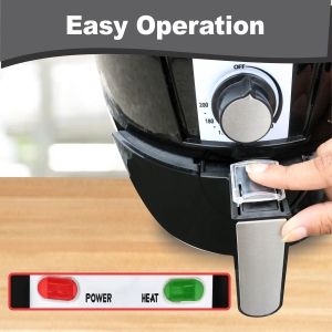 This large Air Fryer is big enough to cook meals for the whole family, but economical and versatile enough for smaller families. Because it cooks food more quickly and therefore uses less power it is also suitable for cooking meals for one. With 1200 W of power, this air fryer heats up in 2-3 minutes and cooks food faster than a conventional oven so you can save money at the same time as cutting down the calories. Use the adjustable thermostat and timer selection that helps you take control of your cooking.The basket is coated with non- stick material which makes it easy to clean and can be detached from the air-fryer which makes serving quick and easy.