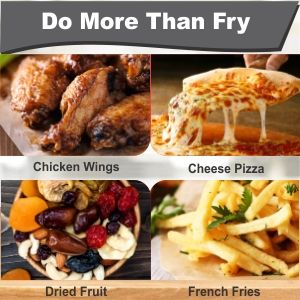 DO MORE THAN FRYSit and relax and let the “Adjustable Thermostat” and "Timer Selection" take care of your dishes. It helps you maintain the perfect, consistent temperature throughout your cooking. Compared with touch screen control, you can choose temp & time by rotating the knob quickly instead of keeping touch, even your finger is wet.