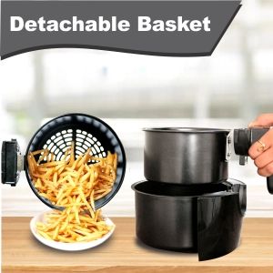QUICK & EASY CLEAN NON-STICK DESIGNDetach your pan from the basket to easily transfer food to a serving plate. This basket is easy to separate and clean. Save your time and ensure hassle-free cooking. Our goal is for quick, simple and healthy cooking. The detachable fry basket has been coated in a high-quality non-stick material to ensure that amazing dishes are prepared without a drop of oil. It is also 100% dishwasher safe.