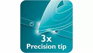 The tip of this Philips iron is precise in 3 ways: it has a pointed tip, button groove and a sleek design of the nose. Triple Precision tip enables you to reach even into the most tricky areas, e.g. around the buttons or between the pleats.