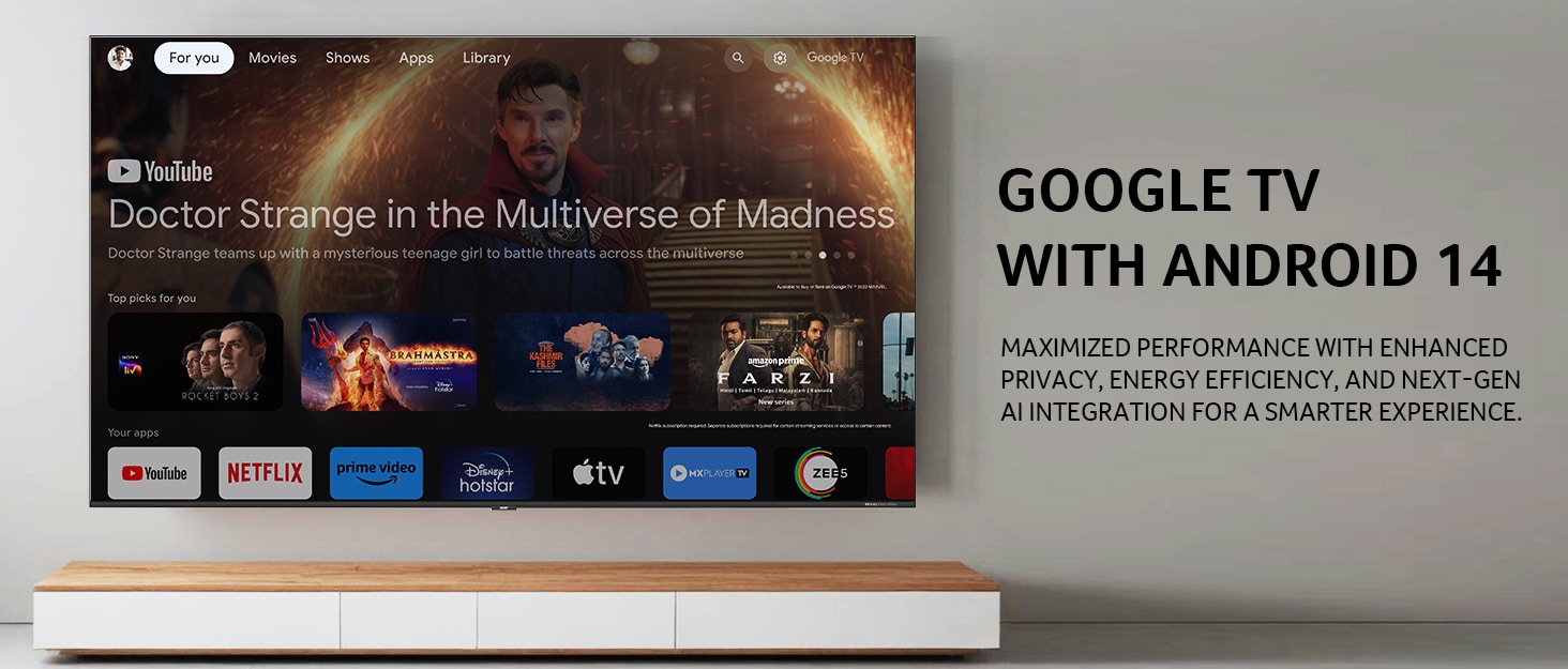 - Apps Supported - Amazon Prime Video, Netflix, Disney+ Hotstar, App Store and Youtube