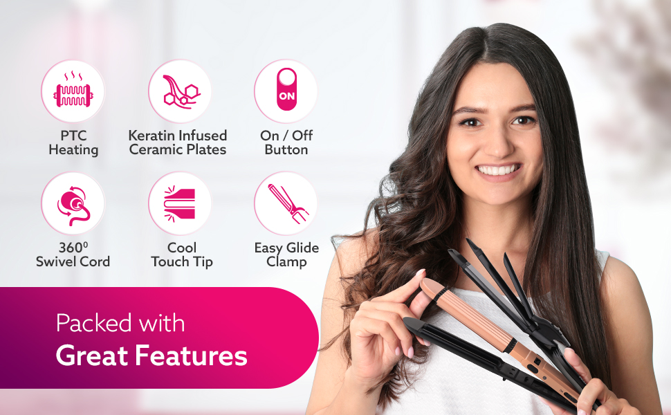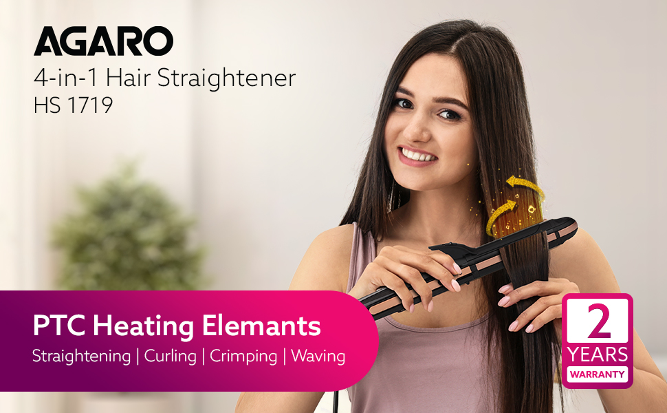 Agaro HS1719 4 in 1 Hair Straightener, Black & Rose Gold