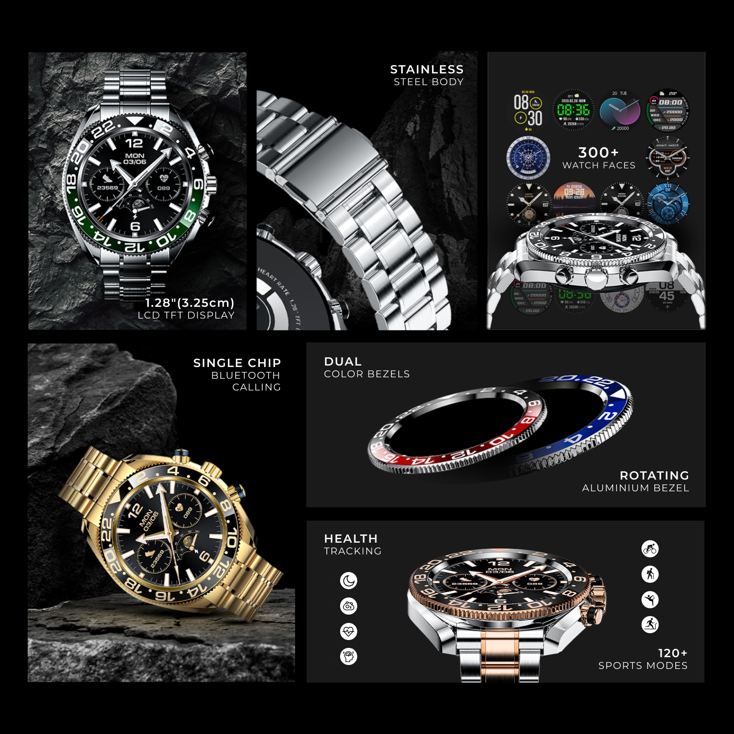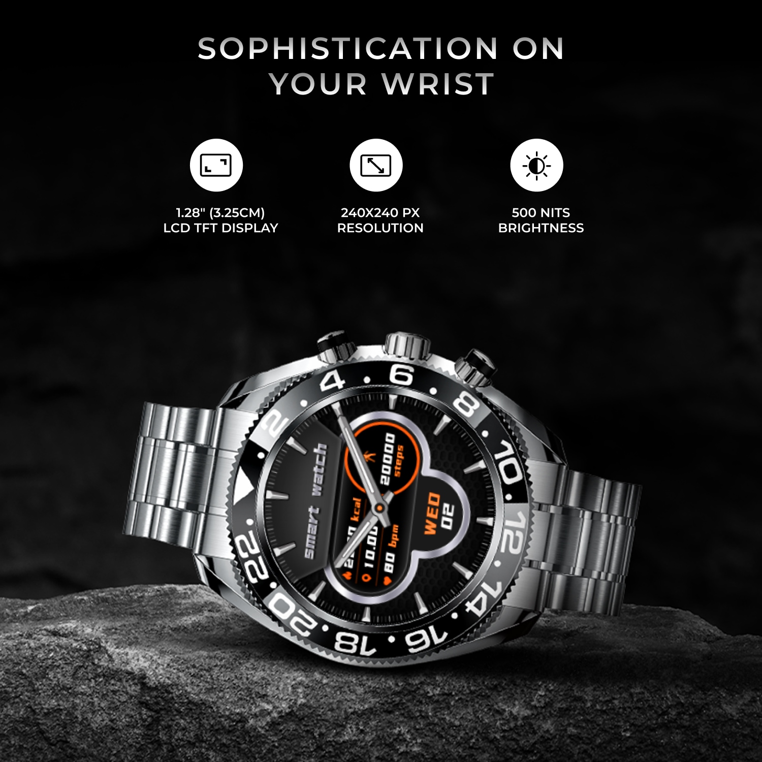 - 3.25 cm (1.28 inch) LCD TFT Display