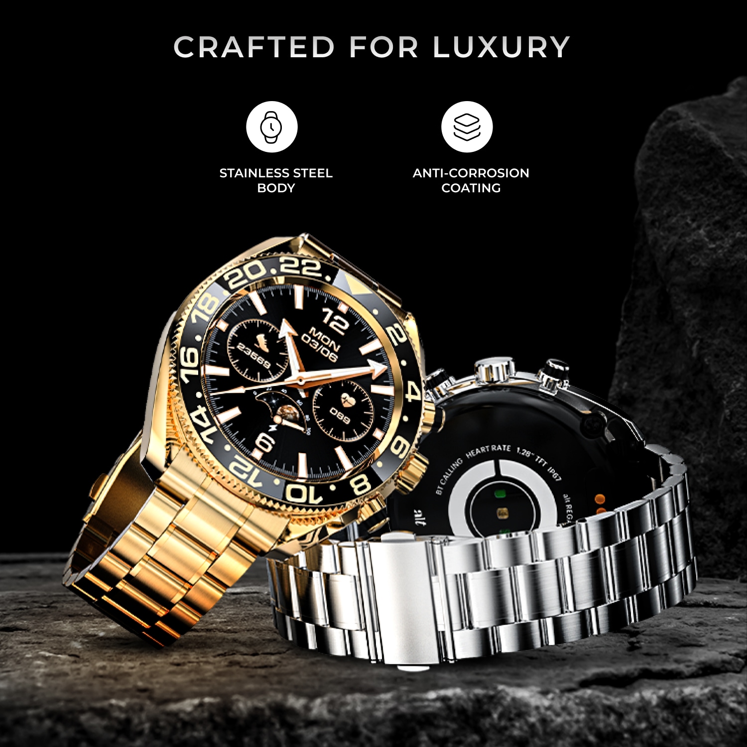 Alt Regal Met Smartwatch with Bluetooth Calling, 1.28 Inch TFT Screen,Luxury Metallic Strap IP67 Water Resistance, Heart Rate, SPO2, Upto 7 days battery,In Built Game,Black Silver