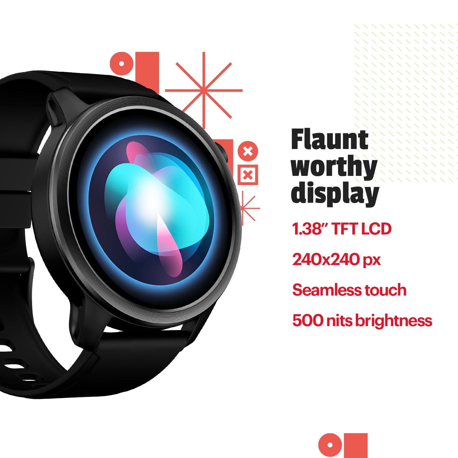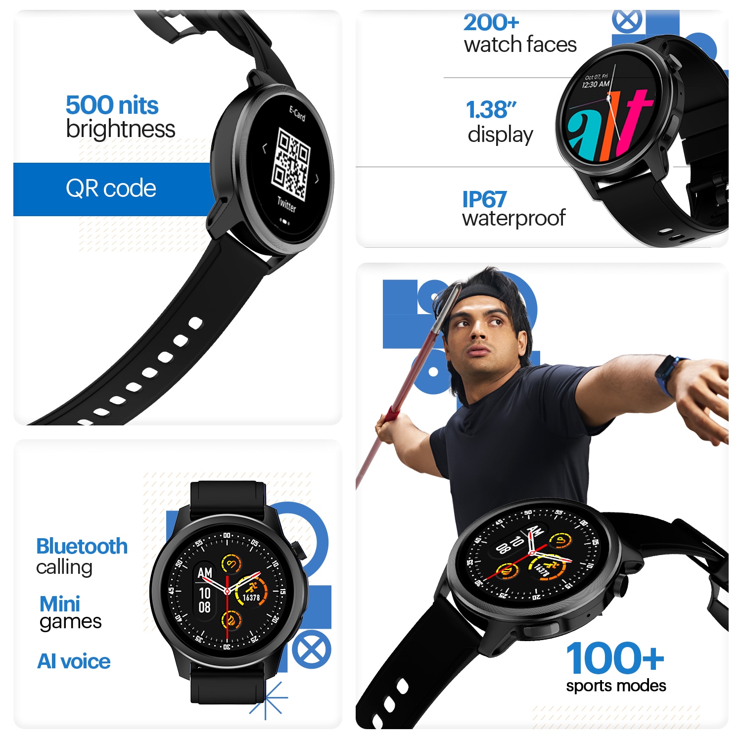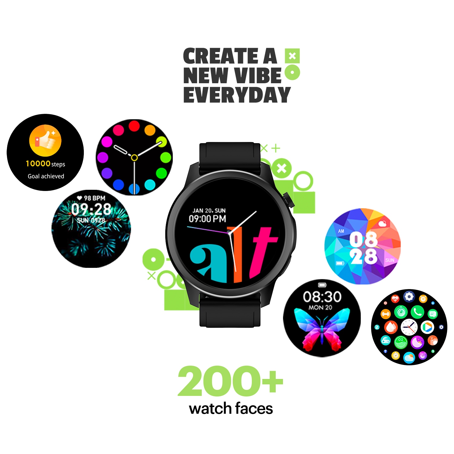 Alt Vibe Smartwatch with Bluetooth Calling, 1.38 Inch TFT Screen, IP67 Water Resistance, 100+ sports mode, Upto 7 days battery, Black