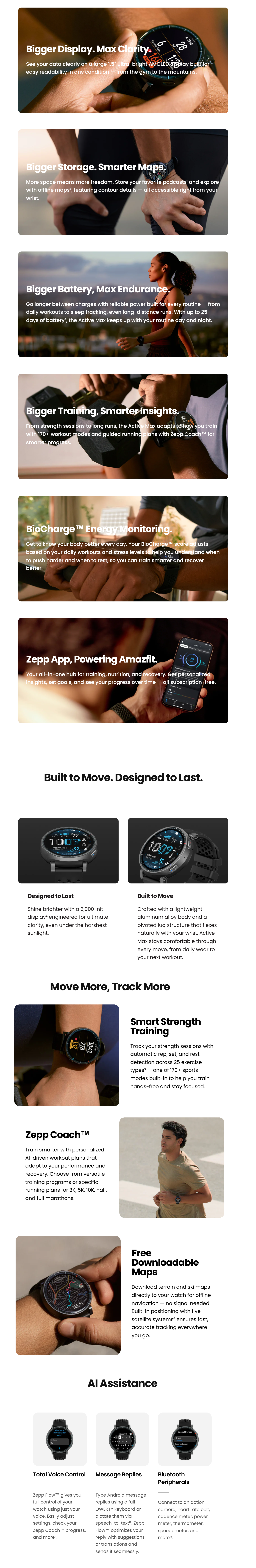 Amazfit Active Max Smart Watch with 3.81 cm (1.5 inch) AMOLED Display, 25 Day Battery, Offline Maps, GPS, 4 GB Storage, 170+ Sport Modes, 5 ATM Water Resistant, Heart Rate & Sleep Fitness Tracker for Android & iPhone, Black