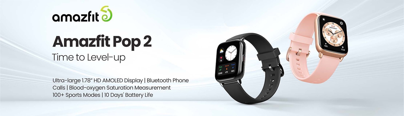 Amazfit Pop 2 Smart Watch with 4.5 cm (1.78 Inch) AMOLED Display (NEW LAUNCH), 100 Plus Sport Modes, Bluetooth Phone Calls, Glossy-Metallic Premium Design, Upto 10 Days Battery Backup, Music and Camera Control, IP68 Water Resistant, Pink