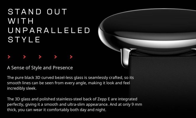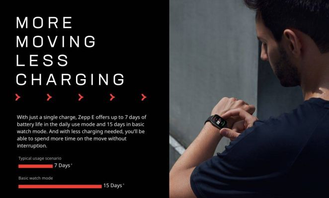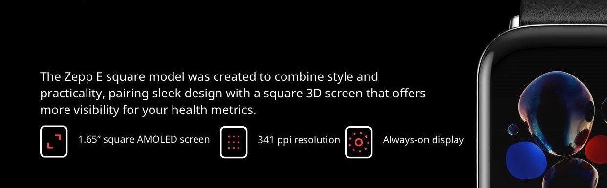The Zepp E square version is designed with minimalism in mind, giving it a simplistic but stylish look and feel.