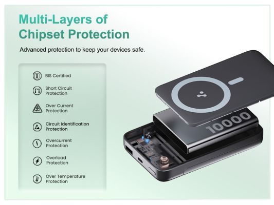 Ambrane 10000 mAh Power Bank, Aero Sync PB 10 Black