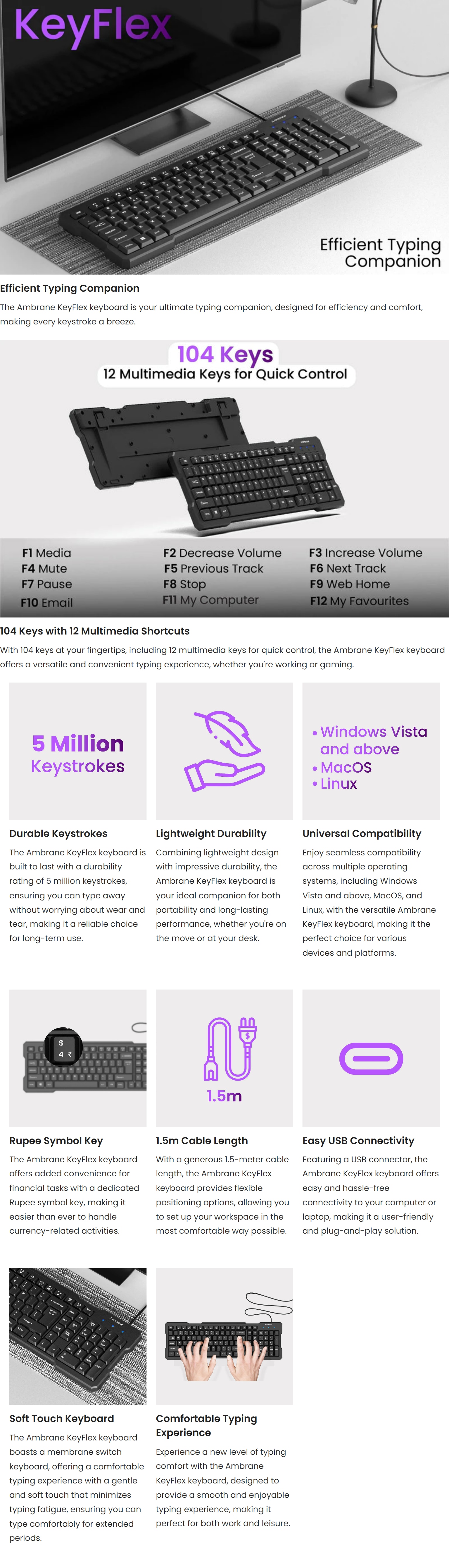 Ambrane KeyFlex Wired Keyboard and Mouse Combo, Black
