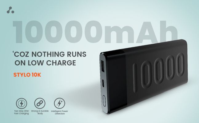 Ambrane Stylo 10000 mAh Li-Polymer Power Bank, 20 W Fast Charging, Dual Output-USB A & Type-C, Type-C PD (Input & Output), Quick Charge, Multi-Layer Protection for iPhone and Android, Black