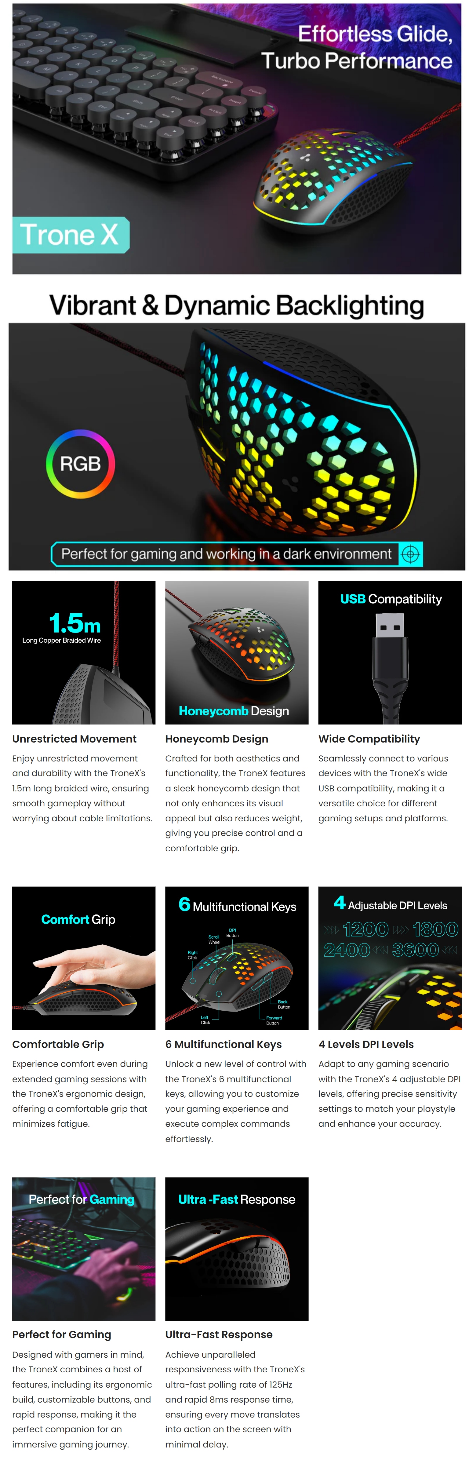 - Honeycomb Design Mouse with 4 Adjustable DPI Level