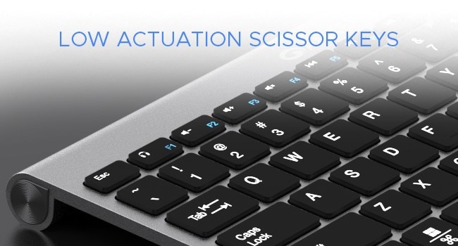 These Laptop Style Scissor Keys give you the Low Actuation to make Faster Typing possible while maintaining the Satisfying Springiness that makes it Fun!