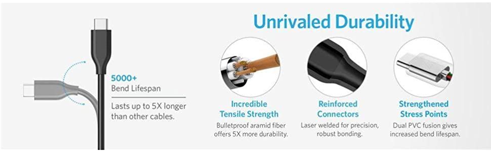 PowerLine is reinforced with aramid fiber to give incredible strength. It boasts a bend lifespan over 5X higher than other USB cables.