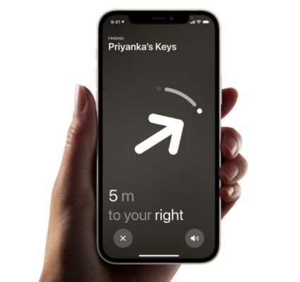 If your AirTag is nearby, your iPhone can lead you straight to it with Precision Finding.1 You’ll see the distance to your AirTag and the direction to head in - all thanks to Ultra Wideband technology.