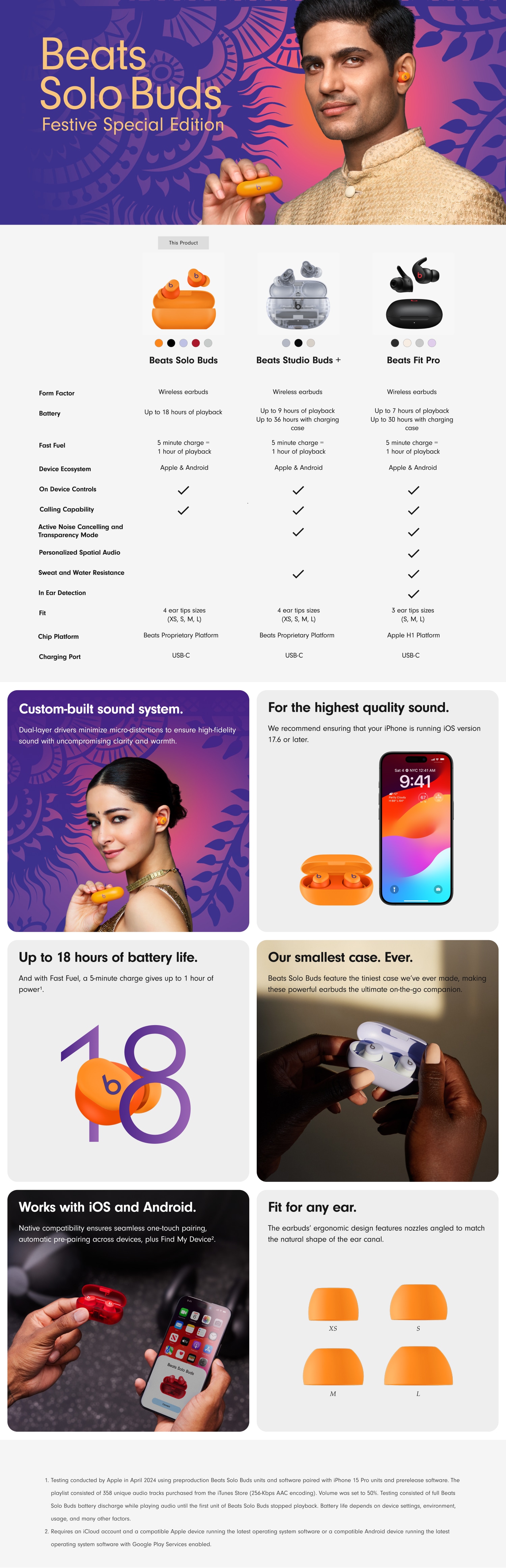 Beats Solo Buds, True Wireless Earbuds with upto 18 Hrs Battery, Dual compatibility with iOS & Android, Crystal Clear Calls, Burnt Orange