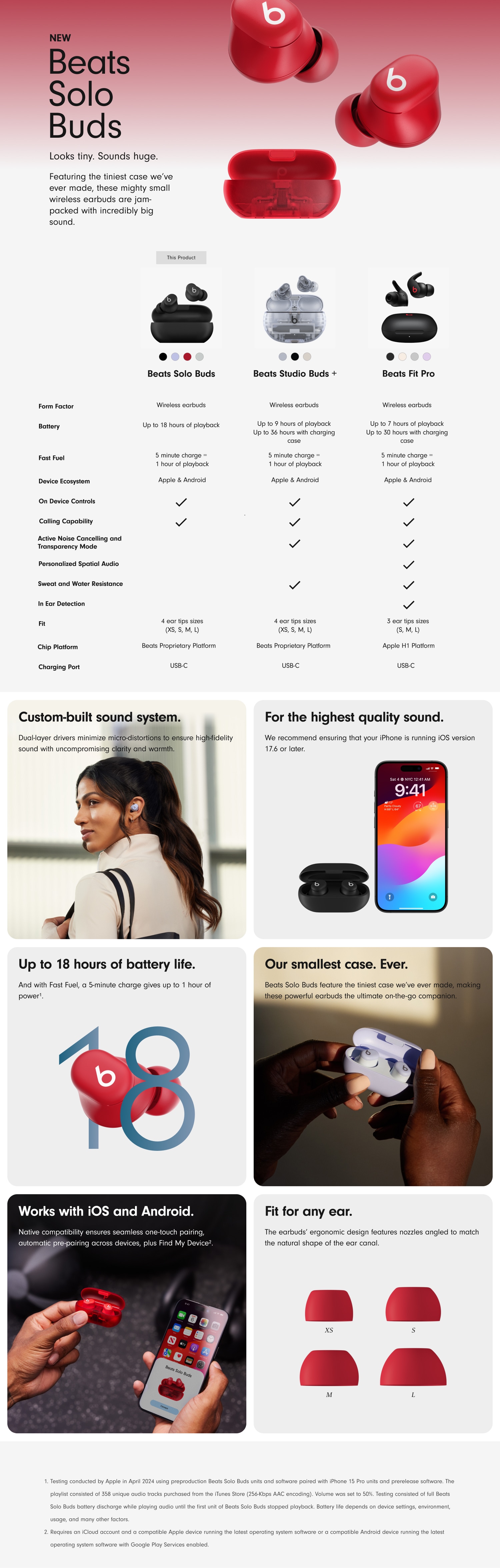 Beats Solo Buds, True Wireless Earbuds with upto 18 Hrs Battery, Dual compatibility with iOS & Android, Crystal Clear Calls, Transparent Red