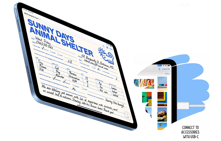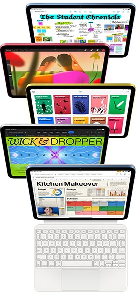 The all-new iPad is colourfully reimagined to be more capable, more intuitive and even more fun. With a new all‑screen design, 27.69-centimetre (10.9-inch) Liquid Retina display and four gorgeous colours, iPad delivers a powerful way to get things done, create and stay connected.1 Add on essential accessories designed just for iPad and enjoy endless versatility for everything you love to do.
