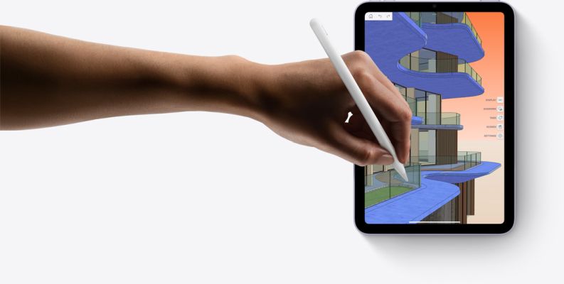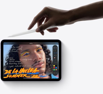 iPad mini now supports the second-generation Apple Pencil.2 It attaches magnetically and charges wirelessly, so it’s always with you when inspiration strikes. And you can double-tap the barrel to quickly switch between tools like a highlighter and an eraser.