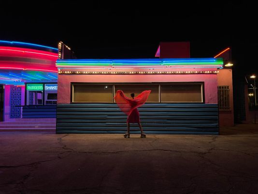 are remarkably true-to-life in almost any light, like all the translucent reds in her outfit and the saturated neon hues of the diner behind.