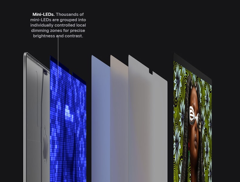 Liquid Retina XDR. Extreme Dynamic Range brings refined specular highlights, incredible detail in shadows, and vibrant, true‑to‑life colours. Each display is calibrated in the factory and features pro reference modes for HDR colour grading, photography, design and print production.