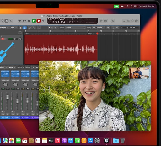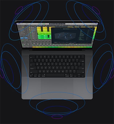 Studio‑quality three-mic array. With a signal-to-noise ratio that rivals professional-grade microphones, MacBook Pro can capture even the subtlest sounds. And directional beamforming minimises background noise so your voice comes through loud and clear.