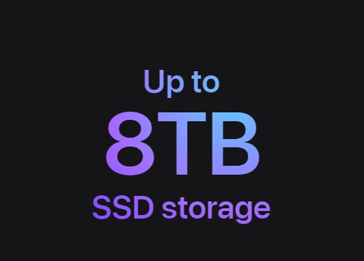 Think huge. MacBook Pro is built on an all-flash storage architecture designed to make everyday tasks snappy and responsive. For demanding workflows with large files, configurations up to 8TB deliver even more performance.