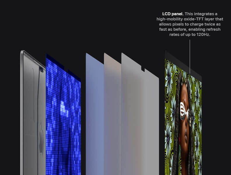 ProMotion. Making everything from scrolling to gaming superfluid and responsive, ProMotion automatically adjusts to match the movement of content — with refresh rates up to 120Hz. Video editors can also choose a fixed refresh rate that precisely aligns with their footage.
