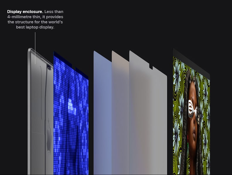 Liquid Retina XDR. Extreme Dynamic Range brings refined specular highlights, incredible detail in shadows, and vibrant, true‑to‑life colours. Each display is calibrated in the factory and features pro reference modes for HDR colour grading, photography, design and print production.