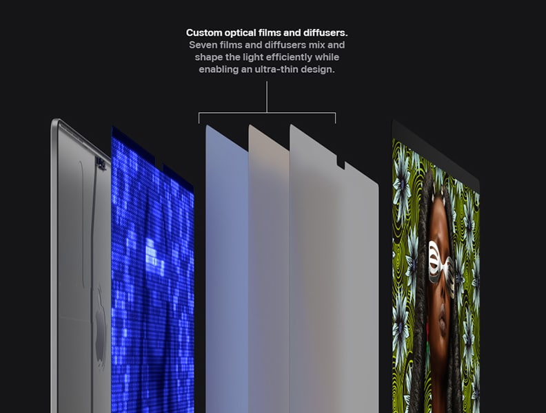 Liquid Retina XDR. Extreme Dynamic Range brings refined specular highlights, incredible detail in shadows, and vibrant, true‑to‑life colours. Each display is calibrated in the factory and features pro reference modes for HDR colour grading, photography, design and print production.