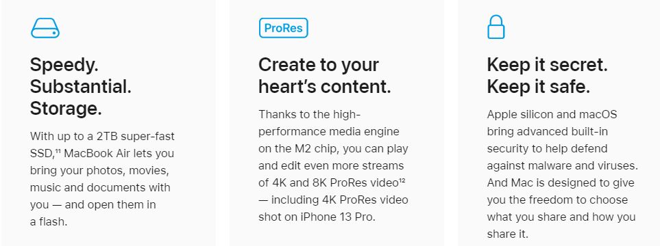The M2 chip starts the next generation of Apple silicon, with even more of the speed and power efficiency of M1. So you can get more done faster with a more powerful 8‑core CPU. Create captivating images and animations with up to a 10-core GPU. Work with more streams of 4K and 8K ProRes video with the high‑performance media engine. And keep working — or playing — all day and into the night with up to 18 hours of battery life.2
