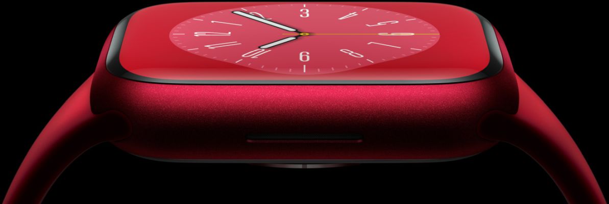 Smooth and seamless. The edge of design. Apple Watch Series 8 features a big, brilliant Always‑On display. Narrow borders push the screen right to the edge, resulting in an elegant integration with the curvature of the case.