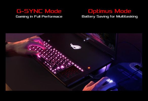 Live a double life powered by the ROG-exclusive GPU switch. With just a few clicks, RLive a double life powered by the ROG-exclusive GPU switch. With just a few clicks, the ROG Zephyrus S17 transitions between better gaming and longer battery life. G-SYNC mode synchronizes the GPU and display to deliver smoother gameplay with lower input lag and tear-free graphics, while Optimus mode selectively turns off the discrete GPU to save power with everyday desktop productivity and entertainment.
