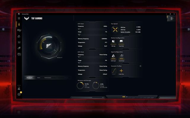 Armoury Crate unifies system and lighting controls to put essential settings at your fingertips in a single utility. Its extensive customization options let you personalize aesthetic effects, fine-tune game profiles, and adjust audio settings to fit your preferences. With Scenario Profiles, you can define and custom preferences that automatically adjust performance and other settings when you launch your favorite apps and games. Take complete control of your experience and make it fully your own.
