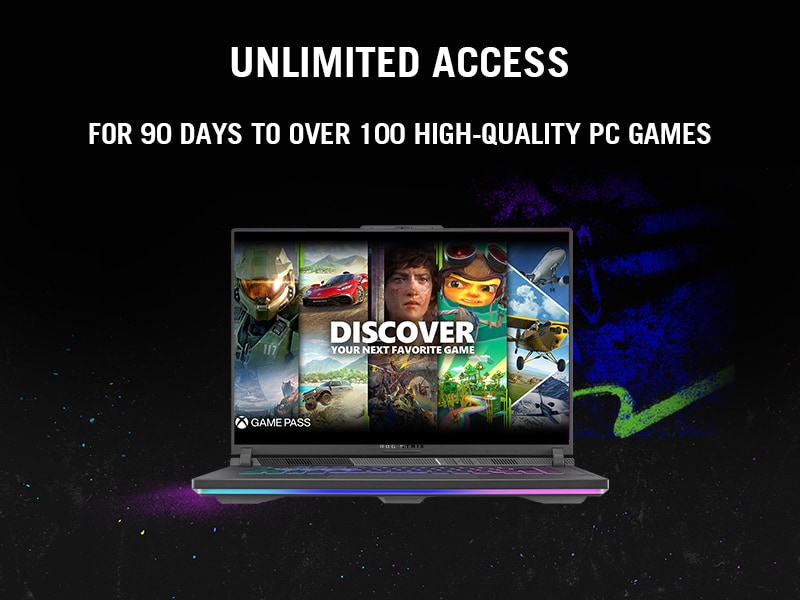 *This Asus ROG 16 Laptop images is for illustration purpose only. Actual image may vary.Access to over 100 high-quality PC games on Windows 11 with new games added all the time. 90-Days subscription to Xbox Game Pass that’s included with the purchase of your device