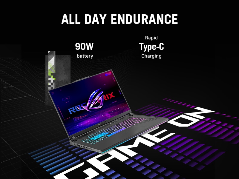 *This Asus ROG 16 Laptop images is for illustration purpose only. Actual image may vary.The Strix G16 is ready to go the distance. Featuring a 90Wh battery, the laptop can easily browse the web for hours away from the wall before needing a recharge. For flexibility on the go, USB Type-C charging is supported up to 100W. When charging using the supplied 330W power adapter, the G16 can recharge from zero to 50% in just 30 minutes.