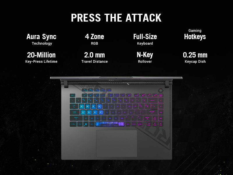 *This Asus ROG 16 Laptop images is for illustration purpose only. Actual image may vary.The Strix G16 has a full-size keyboard designed to secure the win. Overstroke technology offers sublime work and play, reducing key actuation and improving responsiveness. Built with gamers in mind, the keyboard features spaced function keys for intuitive identification and dedicated hotkeys for quick access to essential commands. Large arrow keys allow for more accurate control in the heat of battle. A larger touchpad means easier tracking across all of your applications.