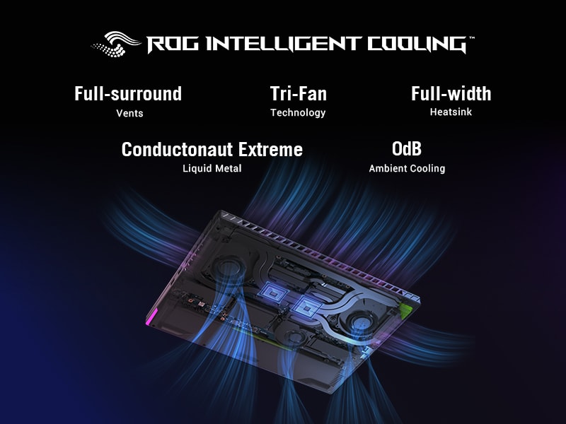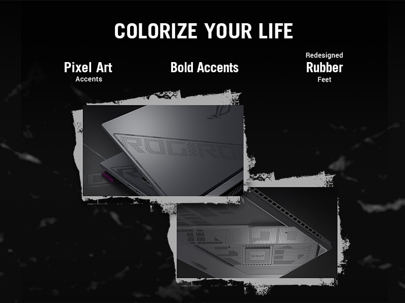 *This Asus ROG 16 Laptop images is for illustration purpose only. Actual image may vary.To accommodate such powerful components, the Strix G16’s chassis and motherboard were both redesigned to accommodate our new full-width heatsink, whose fins were moved even closer to the exhaust vents for more efficient cooling. The full-width heatsink is built from three different sections, surrounding the motherboard with densely-packed fins for a total surface area of 174,183mm², a 71% increase from the 2022 Strix G15.