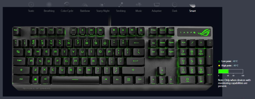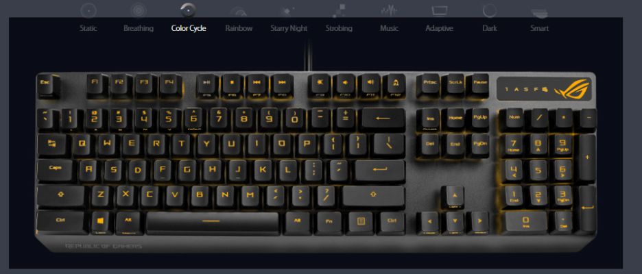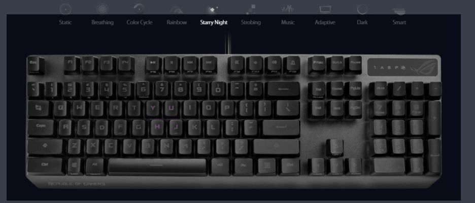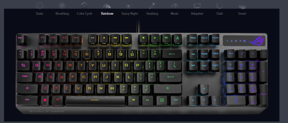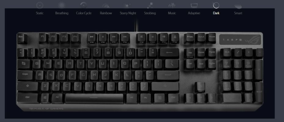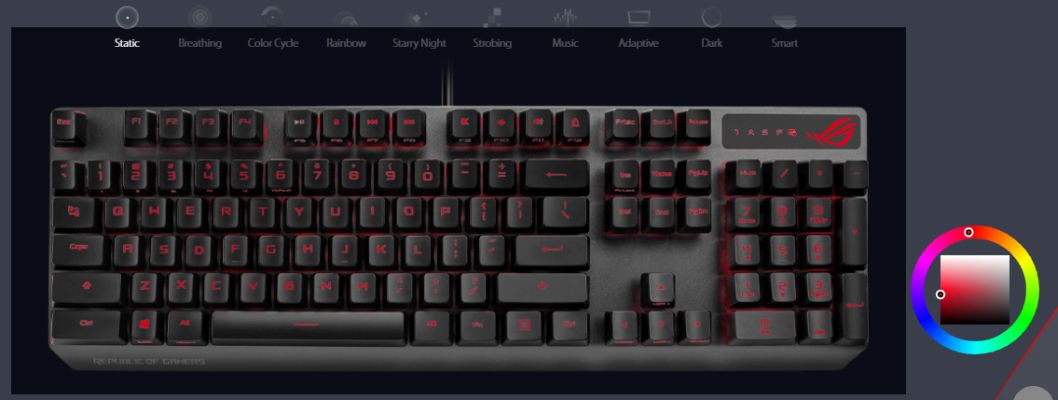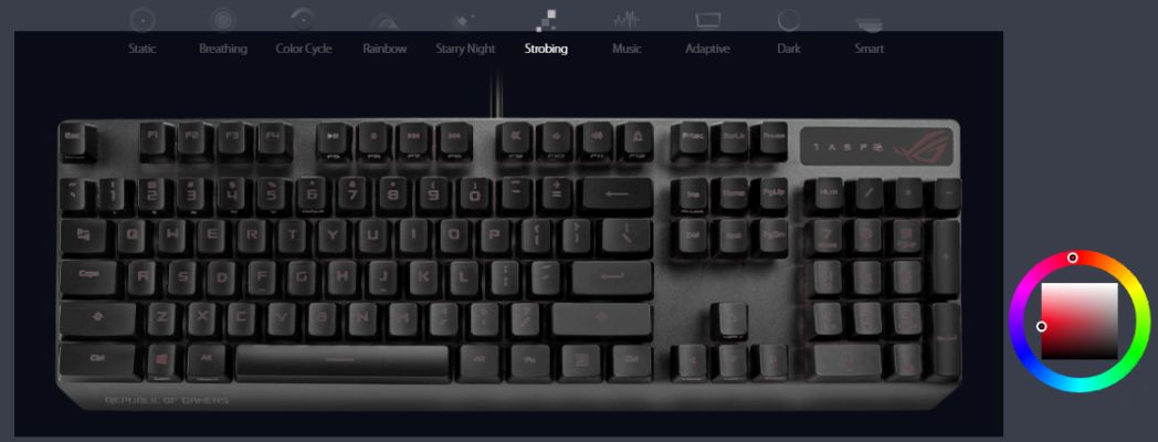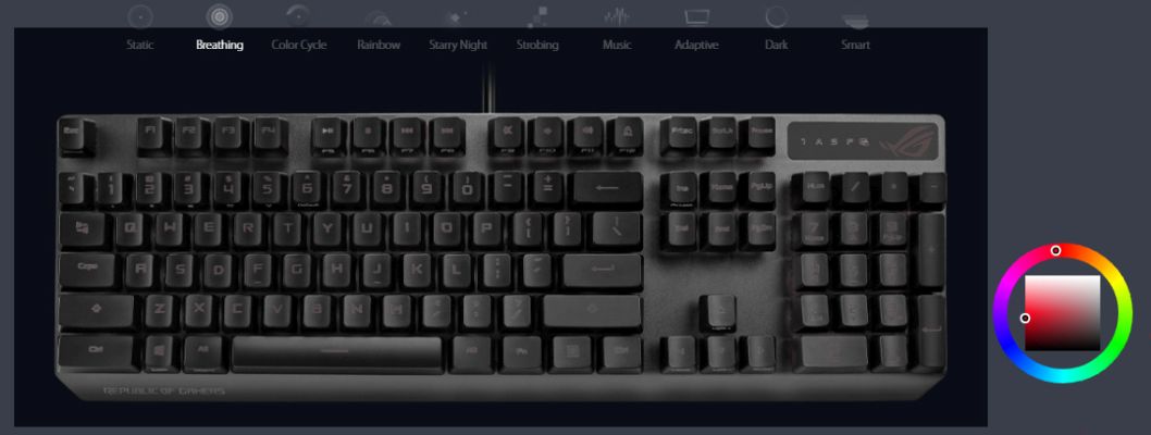 Vibrant per-key backlighting illuminates Strix Scope from top to bottom and edge to edge. Powered by Aura Sync, the entire color spectrum and a range of dynamic lighting effects are at your command for you to create a keyboard that's uniquely yours. The lighting is easily synced with the extensive Aura ecosystem to create a gaming environment that really shines.