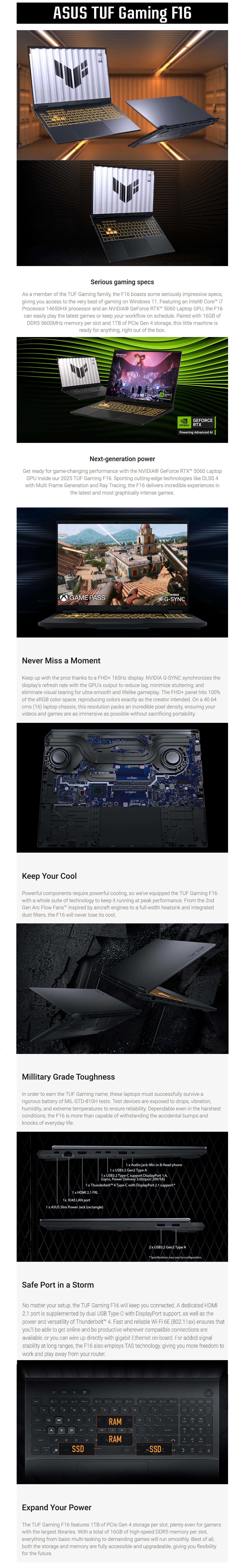 Asus TUF F16 FX608JMR-RV049WS Gaming Laptop (Intel Core i7 14650HX/16 GB/1 TB SSD/8 GB-NVIDIA GeForce RTX 5060 Laptop GPU/Windows 11 Home/Microsoft Office 2024/WUXGA), 40.64 cm - 16 inch, Jaeger Gray