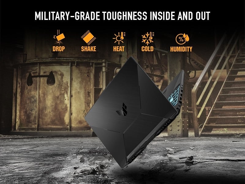 In order to earn the TUF Gaming name, these laptops must successfully survive a rigorous battery of MIL-STD-810H tests. Test devices are exposed to drops, vibration, humidity, and extreme temperatures to ensure reliability. Dependable even in the harshest conditions, the A15 is more than capable of withstanding the accidental bumps and knocks of everyday life.