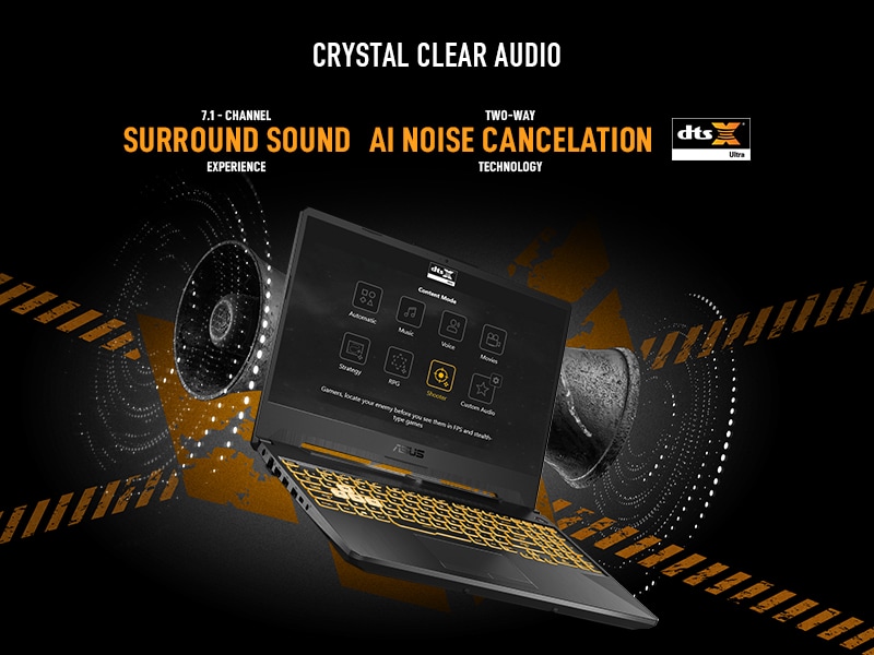 Two speakers with four cut-outs are loud and powerful, enabling deeper audio immersion. DTS:X™ Ultra delivers high-fidelity audio for clear, precise sound. Virtual 7.1-channel surround sound enhances spatial awareness in-game to help you get the drop on enemies