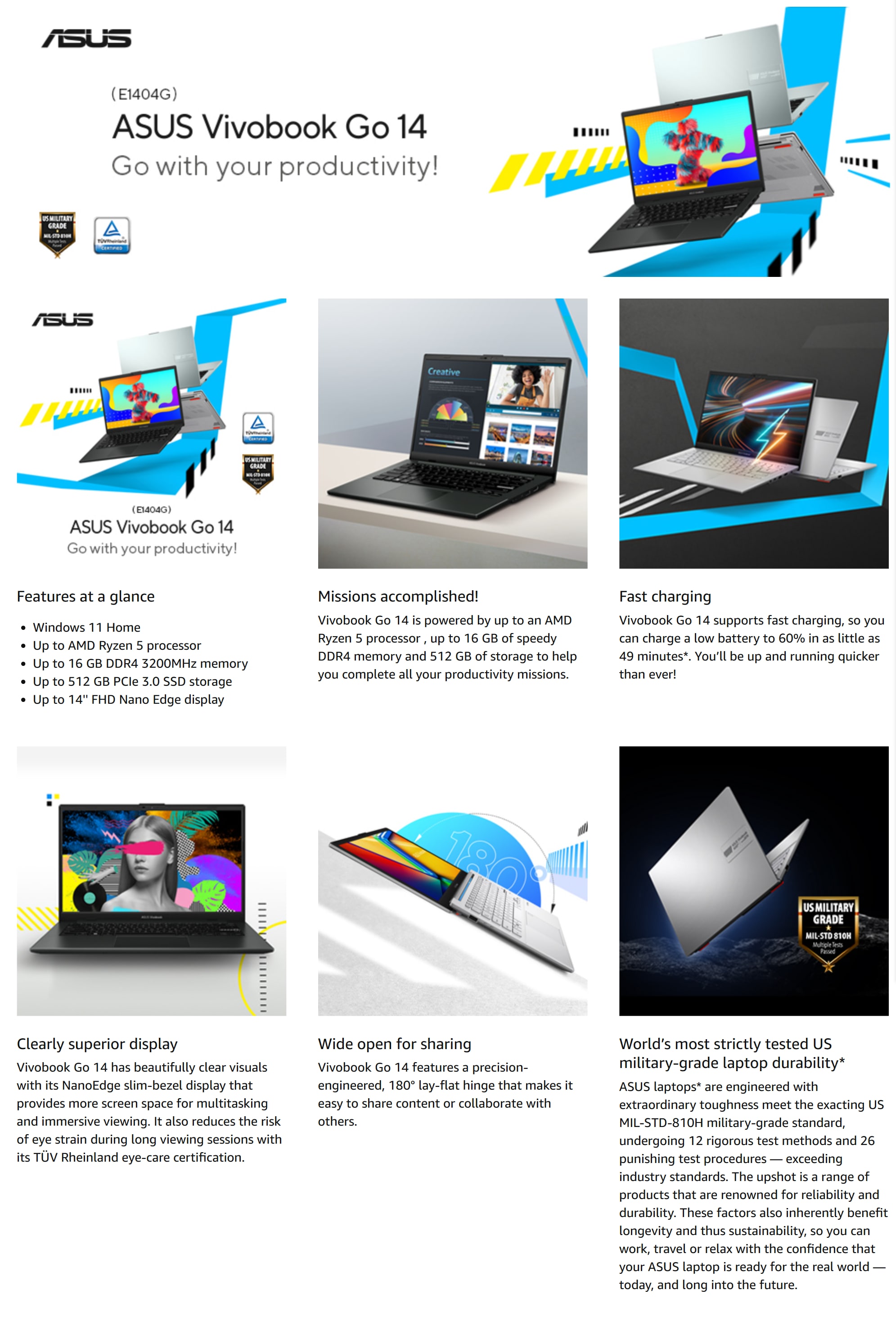 Asus Vivobook Go 14 E1404FA-NK3321WS Standard Laptop (AMD Ryzen 3 7320U/8 GB/512 GB SSD/AMD Radeon Graphics/Windows 11/MSOffice/Full HD), 35.56 cm - 14 inch, Cool Silver