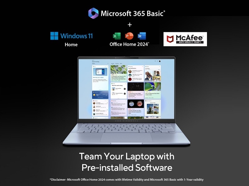 *This Asus VivoBook S14 Laptop images is for illustration purpose only. Actual image may vary.This device comes with 1-year Microsoft 365 Basic subscription, 100 GB cloud storage + Office Home 2024 (lifetime validity), McAfee 1-year anti-virus, and Windows 11 Home OS. Perfect for all your needs!