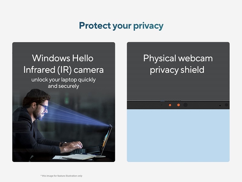 *This Asus VivoBook S14 Laptop images is for illustration purpose only. Actual image may vary.ASUS Vivobook S 14 OLED has an advanced IR camera that enables password-free login in just five seconds, providing swift access and robust security. Additionally, there’s a physical webcam cover to instantly safeguard your privacy.